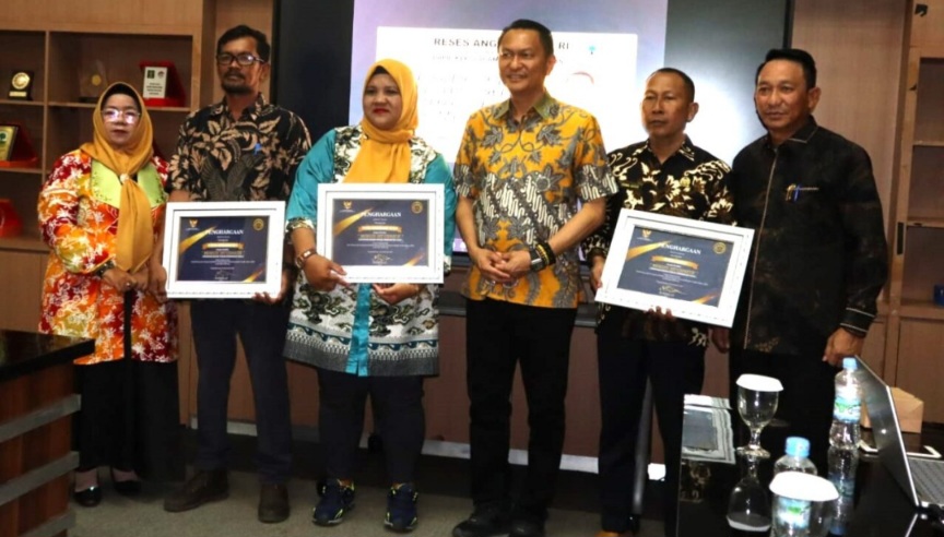 Penyerahan penghargaan Komisi Informasi Provinsi Babel kepada 3 desa di Beltim itu diserahkan oleh Bupati Beltim Aan, Bambang Patijaya dan Maisinun Khairil Anwar.