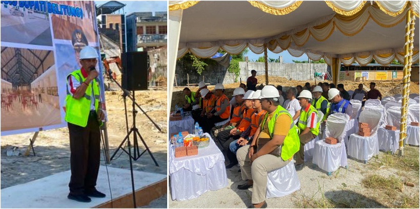 Bupati Belitung, Sahani Saleh Melakukan Proses Peletakan Batu Pertama Pembangunan Food Court Kuliner Tematik, kabupaten Belitung