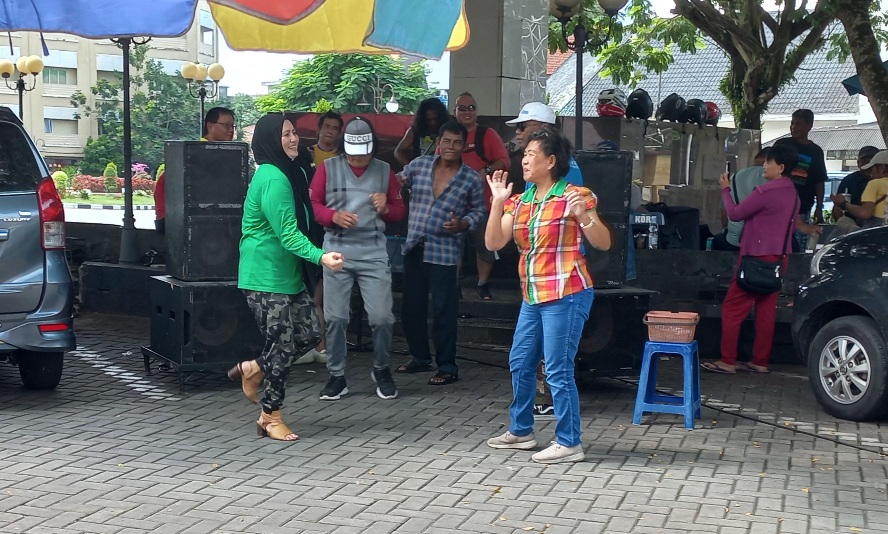 Pada momen itu pun, Hellyana sekalian ikut joget bersama para pengunjung Kv Senang. Acara itu berlangsung hingga jelang siang hari.