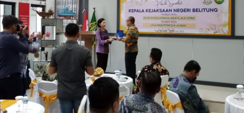 Hal itu disampaikan Lina Nasution pada acara serah terima jabatan barunya sebagai Kajari Belitung di Aula Kejaksaan Negeri (Kejari) Belitung, Jumat (17/2/2023).