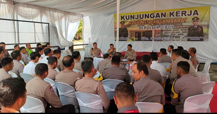 Gasparnews.com, Bangka Barat – Kapolres Bangka Barat AKBP Ade Zamrah SIK didampingi Ketua Bhayangkari Cabang Bangka Barat Ny Putri Ade Zamrah beserta pejabat utama Polres Bangka Barat dan rombongan pengurus Bhayangkari, melaksanakan kunjungan kerja ke Polsek Jebus, Senin (11/9/2023).
