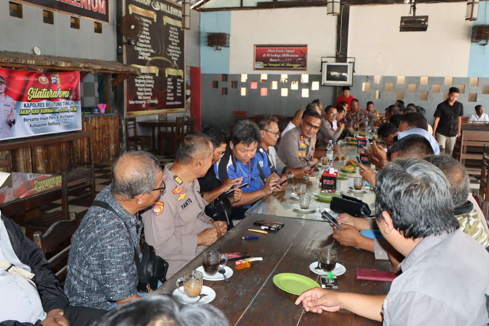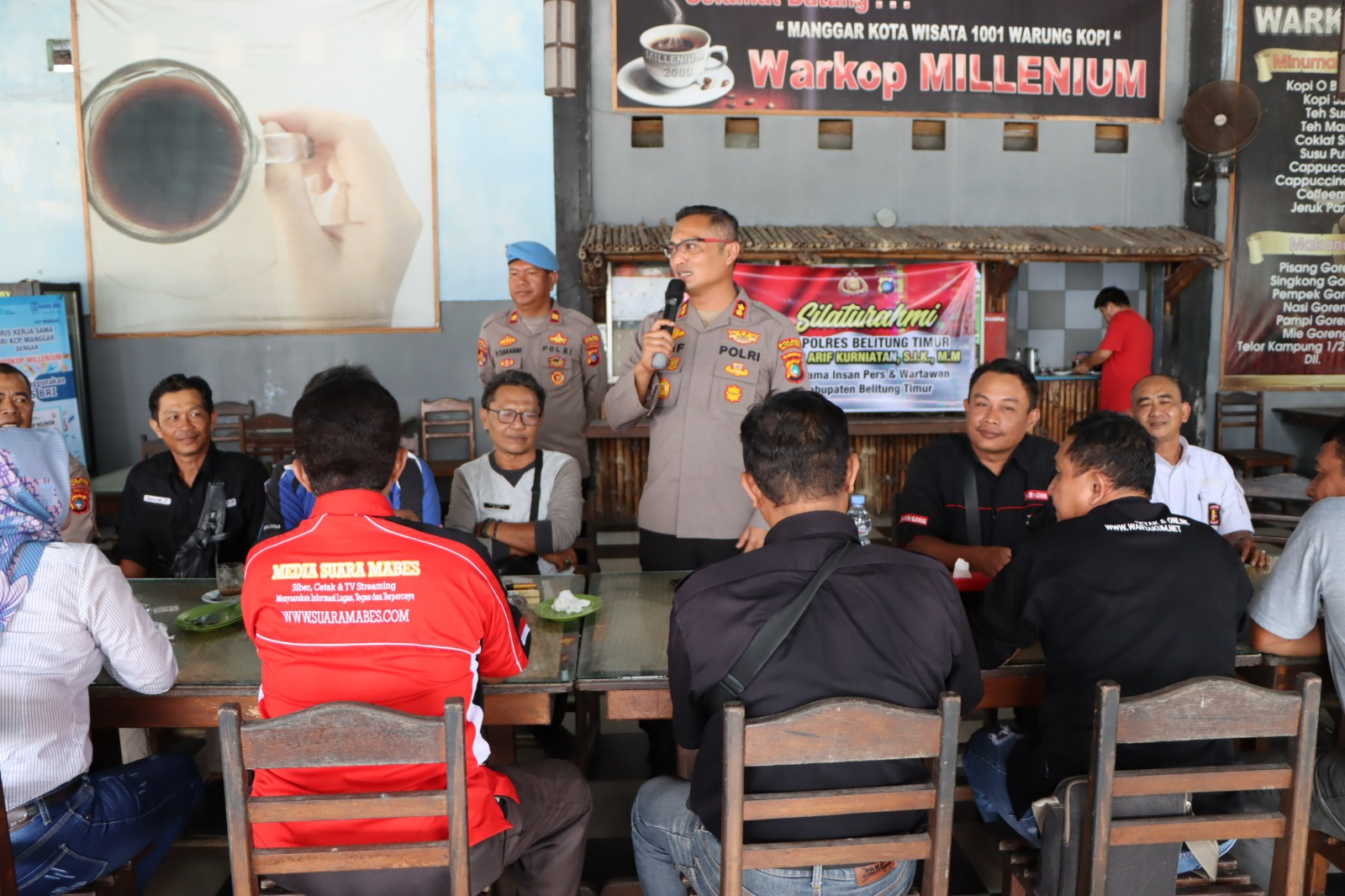Kapolres Beltim AKBP Arif Kurniatan SIK, M.M saat ngopi bareng dengan para wartawan Beltim, dalam sambutannya mengatakan, dengan adanya silahturrahmi ini lebih baik lagi ada kerjasama antara Polres dan Insan Pers dengan melakukan komunikasi, koordinasi dan kolaborasi.