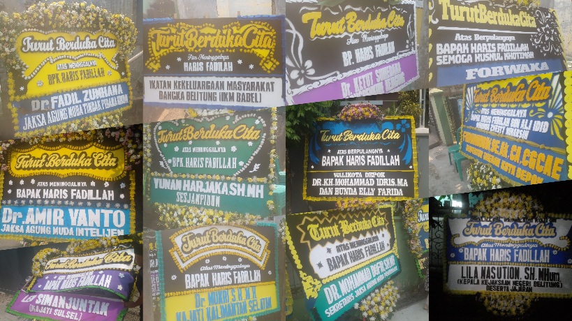 Karangan bunga ucapan turut berduka cita atas wafatnya Haris Fadillah, Wartawan Kejagung dari Pulau Belitung