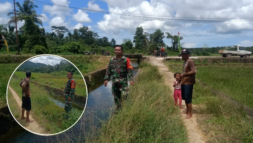 Gasparnews.com, Membalong – Dukung upaya pemerintah dalam mewujudkan swasembada pangan, Babinsa Koramil 04/Membalong, Kodim 0414/Belitung, Sertu Didik melaksanakan kegiatan komsos dengan petani padi.