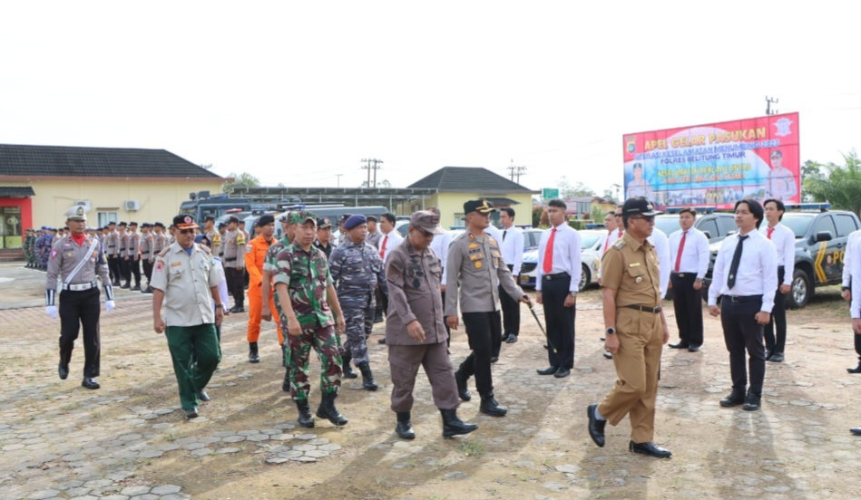 Dalam Upacara Gelar Pasukan ini, Bupati Belitung Timur didampingi Kapolres Beltim dan pejabat Forkopimda lainnya dalam melaksanakan pengecekan pasukan dan kendaraan-kendaraan yang akan digunakan dalam Operasi Keselamatan Menumbing 2023.