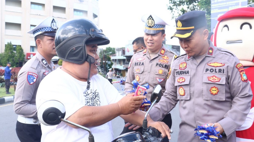 Selain itu, dalam pendekatan yang lebih humanis, pengendara yang tertib dan patuh aturan juga diberikan coklat sebagai bentuk apresiasi.