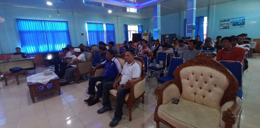 Tamu undangan dan para nelayan Belitung mengikuti acara Diseminasi Regulasi Kesyahbandaran terkait Aplikasi Teman SPB tahun 2023