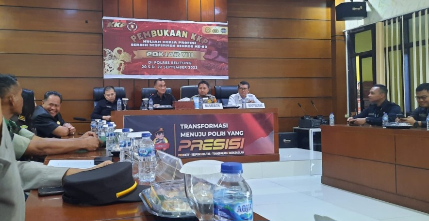 Gasparnews.com, Belitung – Sebanyak 11 peserta didik (serdik) Sekolah Staf dan Pimpinan Menengah (Serdik Sespimmen) Polri Pendidikan Reguler (Dikreg) ke-63 melaksanakan kegiatan Kuliah Kerja Profesi (KKP) TA 2023 di Polres Belitung dengan tema “Mewujudkan Pimpinan Tingkat Menengah Polri Yang Presisi Untuk Indonesia Maju.